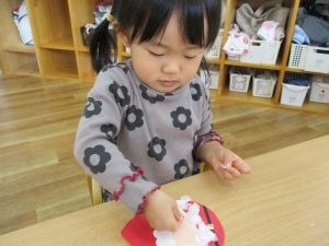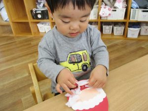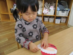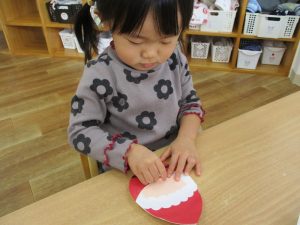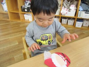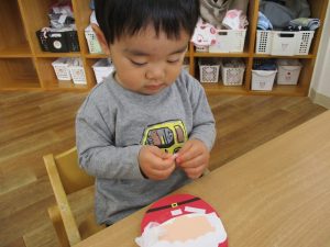完成したサンタクロースを嬉しそうに見る子どもたちでした💛